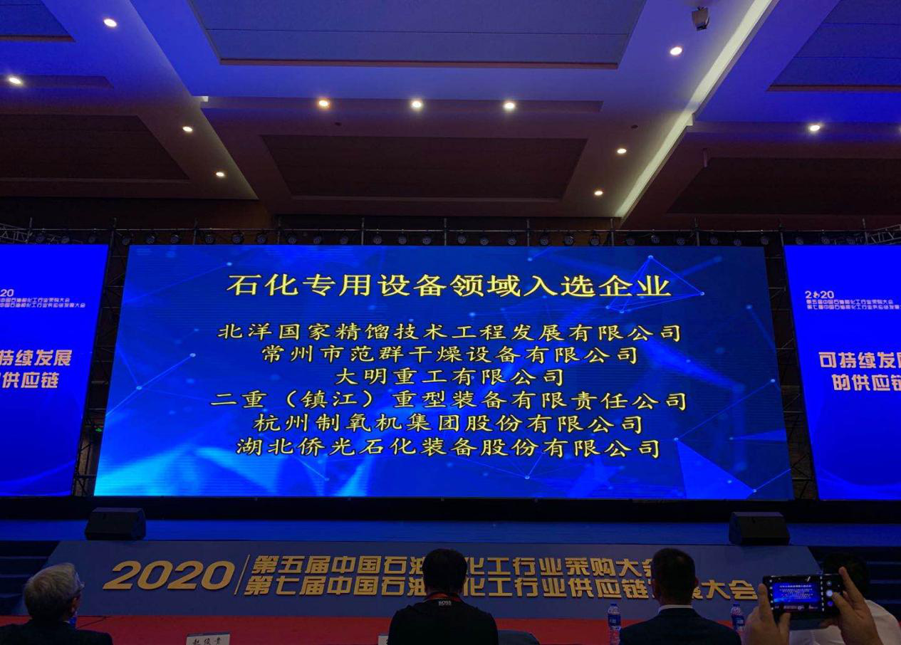 據悉,本次大會以“可持續發展的供應鏈”為主題,共持續3天,參會代表千余人,來自跨國公司、工程公司、典型石化企業、優質供應商的代表及專家深入分析了中國石化行業供應鏈的現狀和問題,提出了可持續發展的方法和路徑,強調通過供采雙方的協同發展實現合作共贏。會上還發布了“2020中國石化行業百佳供應商”榜單。常州范群作為國內干燥設備行業的供應商,斬獲2020年石化機械類“中國石化行業百佳供應商”的殊榮。