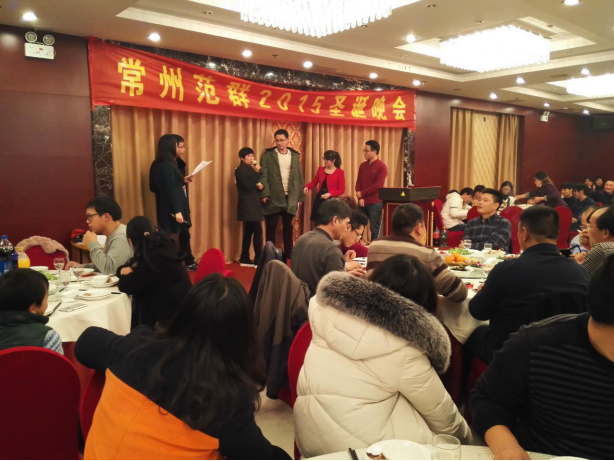 12月24日晚,在星月大酒店二樓大廳舉行常州范群2015年圣誕晚宴,公司全體員工齊聚一堂,歡度圣誕,迎接2016年元旦的到來。晚上5點半,晚宴正式開始,首先董事長范總發言,介紹了今年公司的整體情況和目前的銷售額完成情況,在今年整個經濟環境因素不利的大背景下,銷售額雖然比去年略有下降,但是這是全體員工共同努力的結果,2015年我們克服困難、經受住了磨礪、豐富了經驗。在企業發展走向成熟和壯大的過程中也暴露出了我們的一些問題和不足,需要我們不斷修正和改進。2016年,將是我們創造夢想、持續發展的關鍵之年,我們將為創造范群的美好未來,凝心聚力、集思廣益、奮力拼搏;以創新發展為動力,迎難而上、團結協作、開創2016年范群公司的新輝煌!為社會的發展做出應有的貢獻!