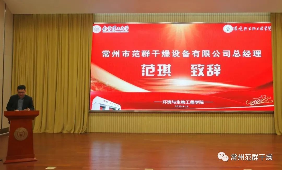 4月12日下午, 南京理工大學環生學院環境與生物工程學院舉行2022年度社會獎學金頒獎典禮暨優秀學生報告會。南京理工大學博士研究生、常州市范群干燥設備有限公司總經理、江蘇南理范群裝備科技有限公司總經理范琪博士應邀出席并作為企業代表發言。