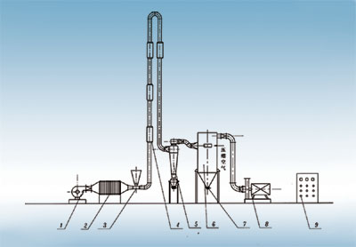 2、干燥機氣體進口溫度高時,當干燥塔內負壓低時須降低加料速度待塔內負壓回升穩定后再重新調節加料速度,保證出口溫度為設計值。